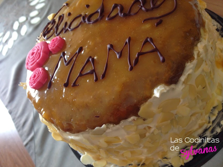 Consejo: La llena la podemos quemar con un quemador sin apretar mucho para no dejar la marca, o con un soplete de cocina. (Si no tenemos ninguna de las dos cosas, antes de montar la tarta cubriremos la ultima capa con la crema de yema, espolvoreamos el azúcar moreno y la metemos al microondas con grill 2 minutos, dejamos enfriar el bizcocho y colocamos encima de la trufa, no nos quedara igual, pero cogerá algo de color. Aunque también puedes dejar la crema sin quemar.)