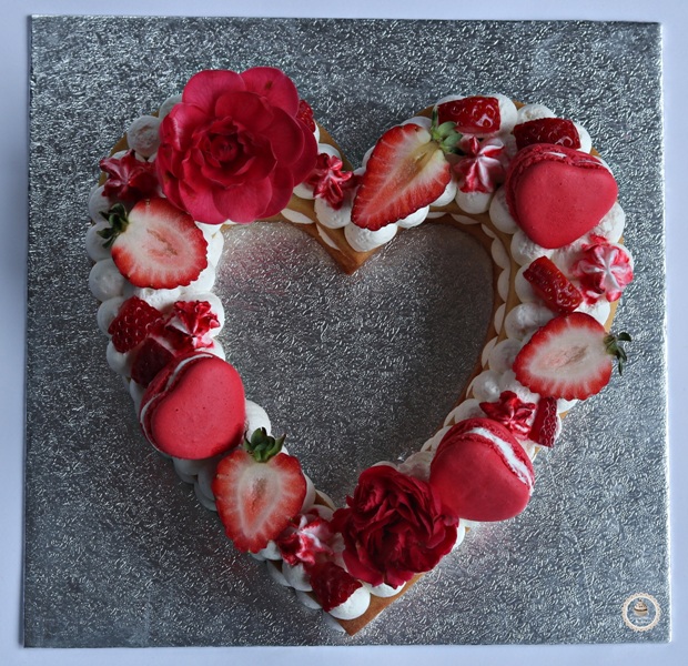 Una vez haya transcurrido el tiempo de reposo, sacar de la nevera y con la ayuda de una plantilla, (aquí os dejo la que he usado yo) y de un cuchillo, recortar por los bordes de la plantilla y retirar los excesos con cuidado de no estropear el corazón.
