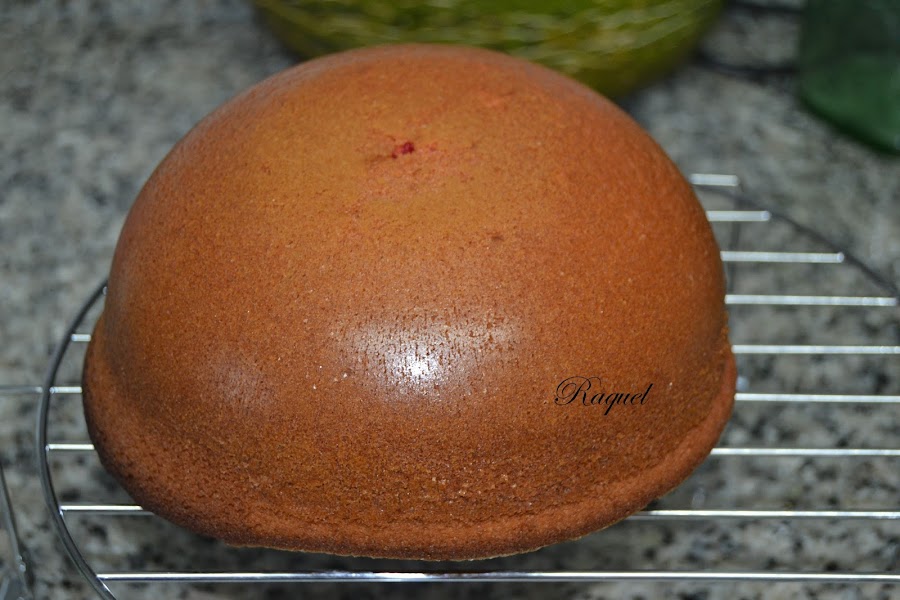 Dejamos enfriar un poco y desmoldamos sobre una rejilla, hasta que este completamente frió yo lo hice el día anterior por la tarde.