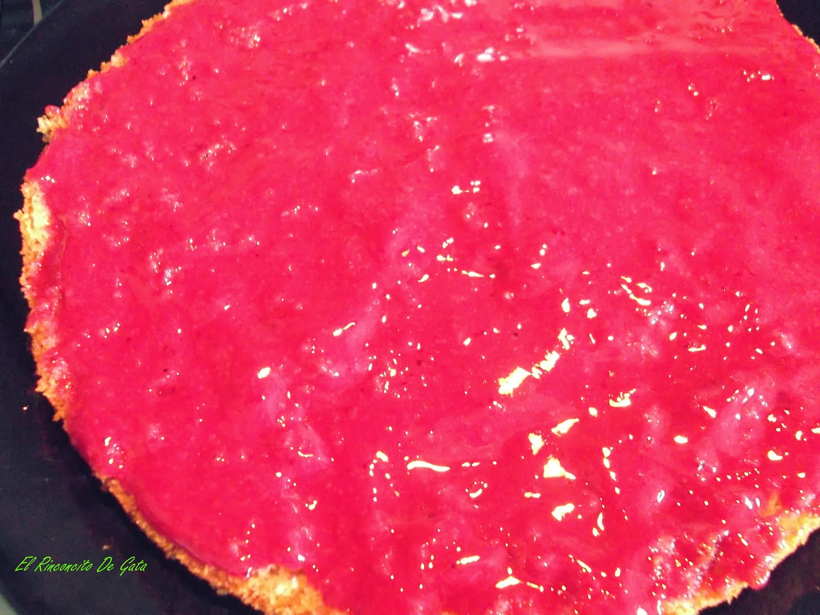 Vamos a preparar la primera capa, la capa base. Cogemos la mermelada y la trituramos, a mi personalmente no me gusta encontrarme las semillas de las frutas del bosque, así que trituro la mermelada y luego la paso por un colador. Para que sea más fácil trituraría añadirle una cucharadita de agua.
