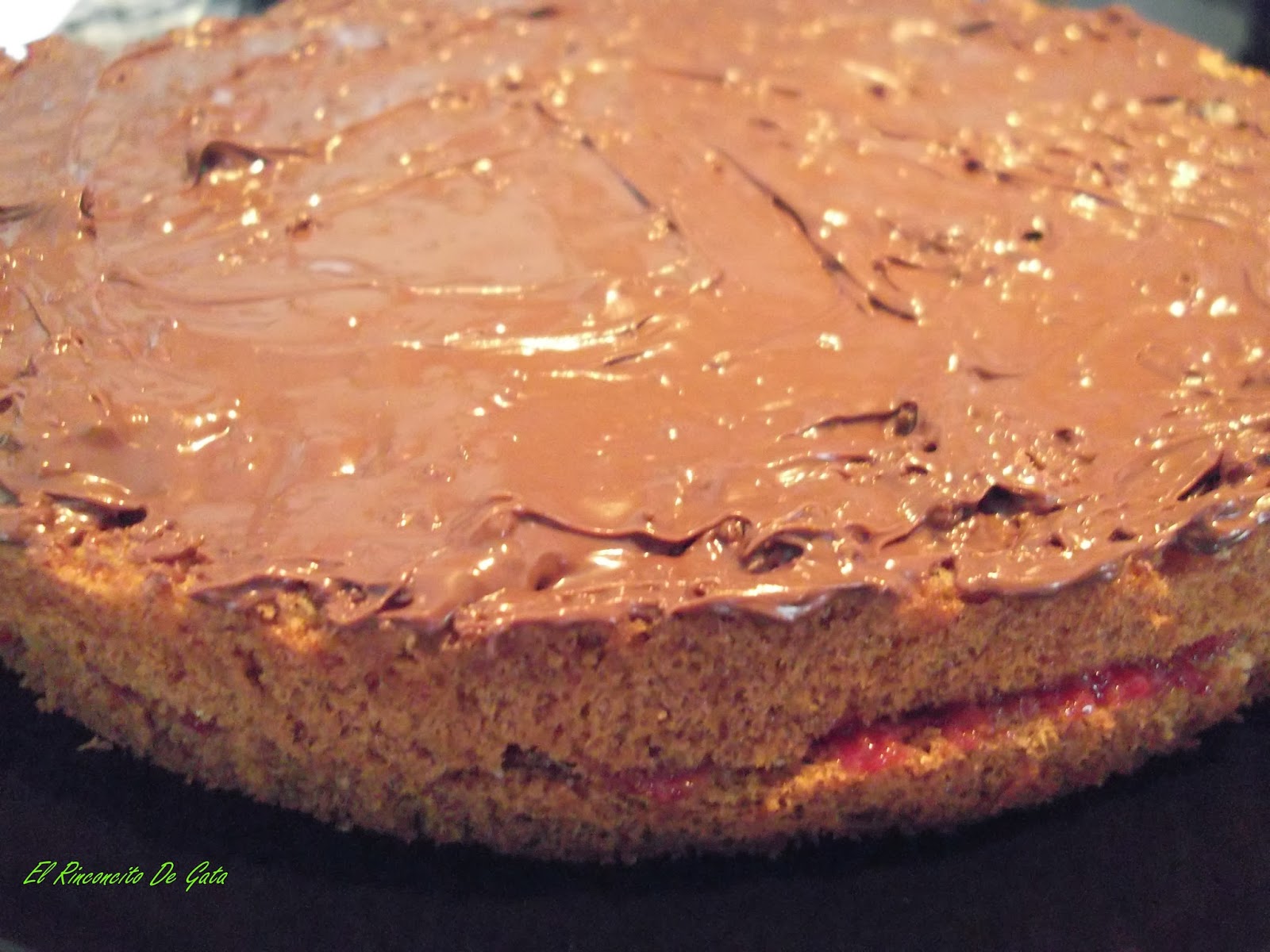 Ahora cubrimos con la placa de bizcocho del medio, esta la vamos a cubrir con una ligera capa de nocilla.