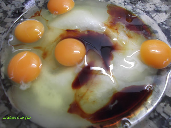 Ponemos en un bol, los huevos a temperatura ambiente, el azúcar, la esencia de vainilla y la pizca de sal.