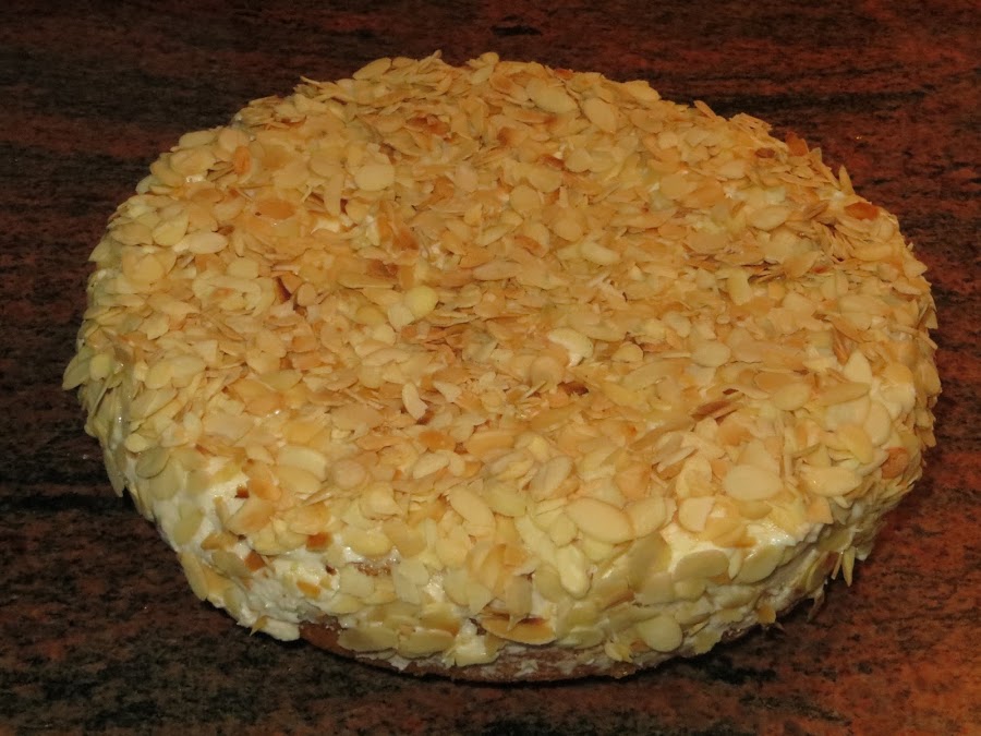 Metí las almendras laminadas al horno durante cinco minutos para tostarlas, las esparcí por encima y ya está la tarta lista para comer. Es una tarta muy sencilla que da muy buen resultado y si conocéis a alguien que se llame Sara le podéis dar una sorpresa.