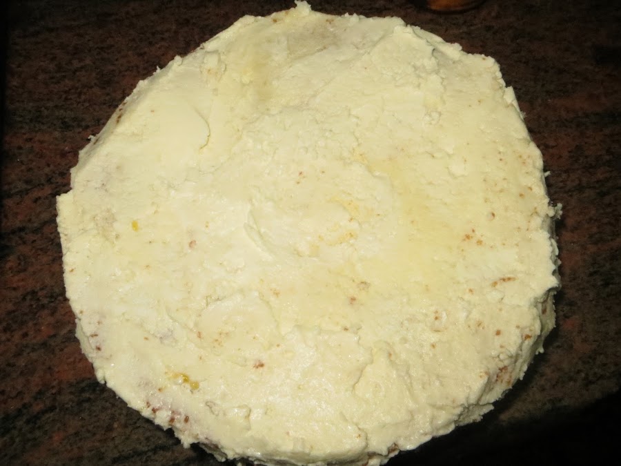 Ahora llega el turno de la mantequilla, que la habéis tenido que sacar un rato antes de la nevera para que se unte con facilidad. No sirve cualquier tipo de mantequilla tiene que ser dulce, de pastelería, yo compré mantequilla de Soria que es de este estilo y que además está muy buena, aunque es bastante más cara que la normal. Unté mi bizcocho con la mantequilla.