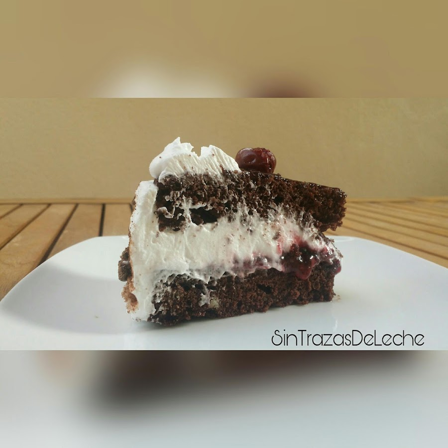 Para montar la tarta, cortamos el bizcocho por la mitad (en sentido transversal)lo cubrimos con la mermelada de frutos rojos, dejando un poco para decorar la parte de arriba, extendemos nata (crema de leche) de soja por encima de la mermelada y unos cuantos frutos rojos, cubrimos con la otra mitad del bizcocho. decoramos con la mermelada sobrante, nata (crema de leche) y algún fruto rojo.