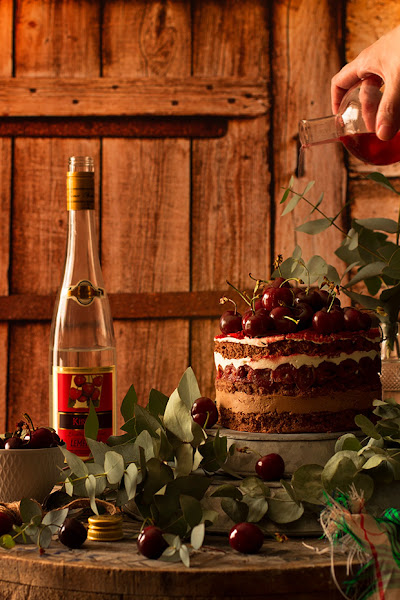 Es imposible hacer una auténtica Tarta Selva Negra sin Kirsch. Se trata de un licor incoloro que se destila a partir de una variedad de cerezas silvestres originarias de la Selva Negra alemana. Por eso, elaborar este famoso pastel sin Kirsch es casi pecado capital. No lograrás el auténtico sabor selva negra usando ron, coñac o cualquier otro licor. ¿Te imaginas preparar un Mojito con tequila? Pues lo mismo sucede con una tarta Selva Negra sin Kirsch. [Si no tienes ese licor en casa, he visto unos packs divinos en una cadena de supermercados alemana, con mini botellas de los licores más usados en repostería, que seguro te vienen fenomenal]