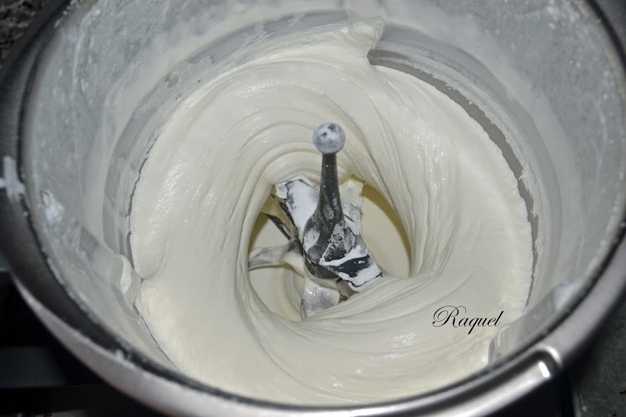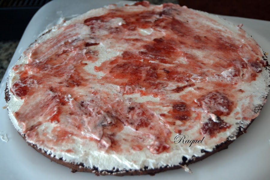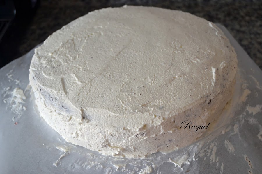 Ponemos el ultimo disco y ponemos el resto de nata (crema de leche) y lo esparcimos por toda la tarta, encima y a los lados.