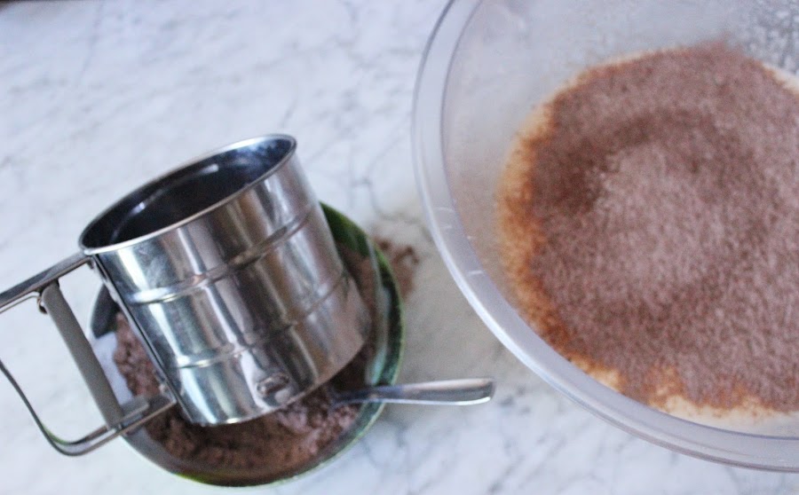 Tamizar la harina junto con el cacao y añadir a la mezcla