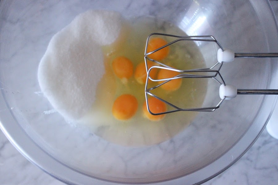 Mientras, montar la nata (crema de leche) con el azúcar glas y la esencia de vainilla.