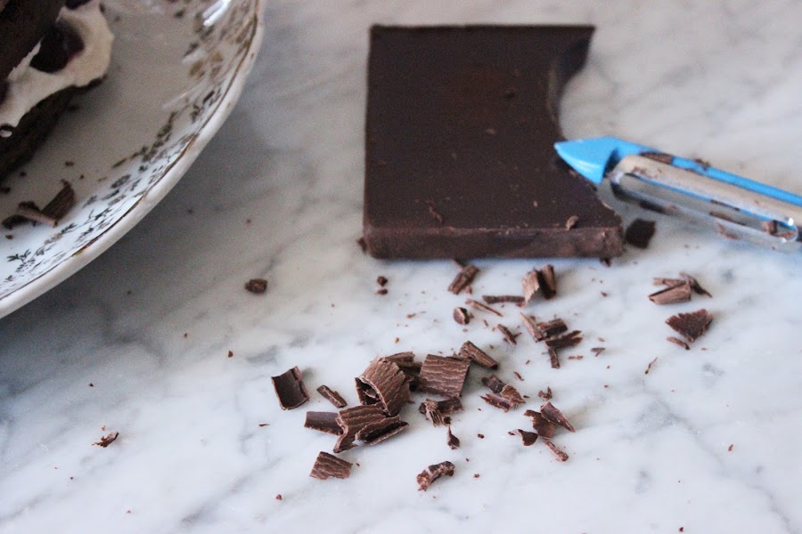 Decorar con cerezas, virutas de chocolate (las puedes hacer con un