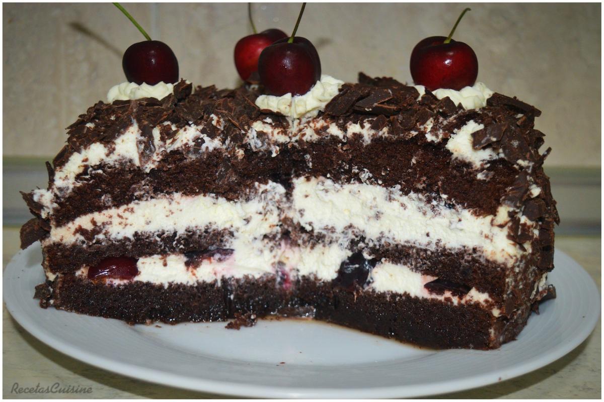Esta tarta tan famosa, se lleva preparando desde el siglo XVI, y su nombre viene dado por la oscuridad de la región de Baden-Württemberg, famosa por sus cerezas, de las que se obtiene el Kirsch, un licor de alta graduación alcohólica. En la receta original se utiliza, pero en esta adaptación que yo he seguido, no lo utilizaban. Es una tarta fácil de preparar, lo que por sus pasos, resulta algo laboriosa, pero que si nos organizamos bien, no nos supondrá ningún esfuerzo. Por ejemplo, podemos preparar el bizcocho el día antes, y una vez frío, lo guardaremos en la nevera bien envuelto. De este modo, tendremos tarea adelantada y nos dedicaremos al relleno el día que vayamos a servirla.
