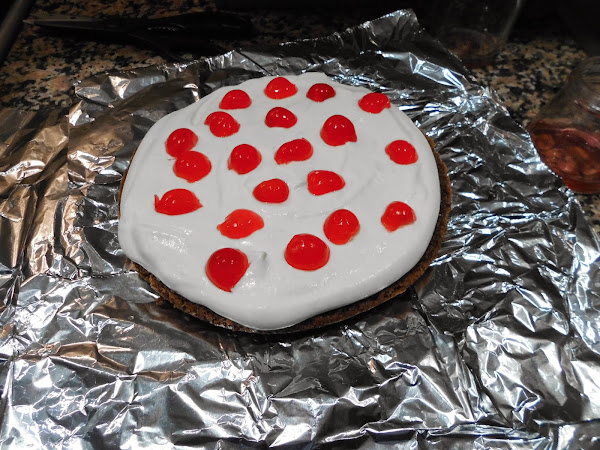 Por arriba las mas grandes, y hacemos un cordón de nata (crema de leche) y le ponemos las guindas por encima.