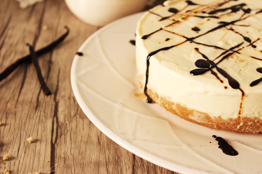 Poner la leche con la vaina de vainilla en la nevera para que se infusione un día antes. Triturar las galletas y mezclar con la mantequilla hasta que quede una textura como de arena mojada.