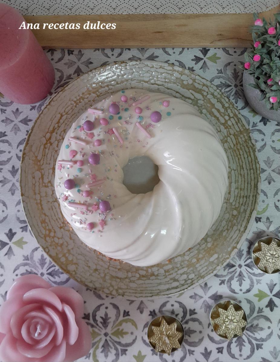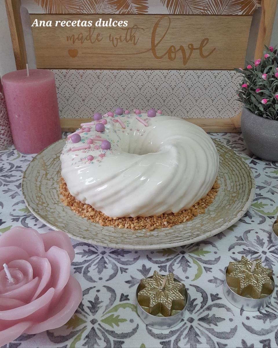 En un cazo echamos el resto del agua, la leche condesada y el azúcar, ponemos a fuego medio y sin dejar de remover dejamos hasta hervir, en esté punto bajamos el fuego al mínimo y añadimos la gelatina que ya habrá absorbido todo el agua, mezclamos hasta disolverla por completo, a continuación agregamos el chocolate blanco, mezclamos hasta que se derretida y se integre por completo, apartamos del fuego y añadimos el colorante alimentario poco a poco hasta conseguir el color deseado (el colorante es opcional, pero el chocolate blanco le da un color amarillento al glaseado y sí quieres que te quede de color blanco como el mío, tendrás que utilizar colorante).
