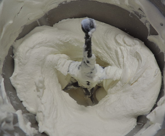 Poner en el vaso la nata (crema de leche) y la leche condensada.Montar a velocidad 4 con la mariposa.Ya sabéis que para montar la nata (crema de leche) no se programa tiempo,tenemos que estar pendiente en todo momento para que no se nos pase y hagamos mantequilla.