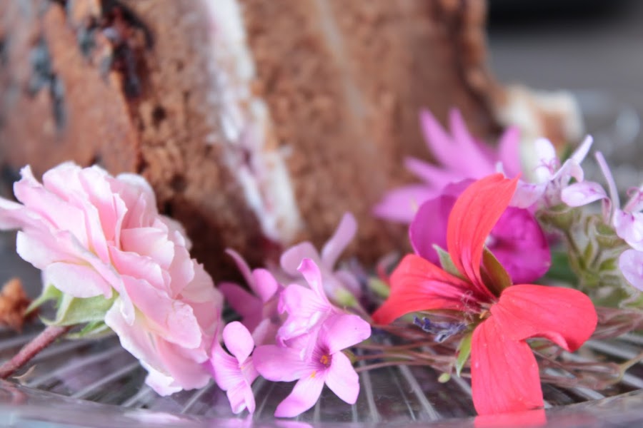 Preparation of chocolate cake: We start undoing butter but without overheating the butter in the microwave to defrost mode. We will cut the chocolate into small pieces that will pour butter. Varillamos hard to undo the chocolate and put it in the refrigerator to lose temperature. This cake is basic, as we have made some. In this case I wanted, as you can see by the pictures, eat chocolate, but much, so I did it with a lot of chocolate and it was scrumptious. But the preparation is any biscuit. So first we beat the eggs vigorously as they have doubled the volume we add sugar. Then we add up the walls of the bowl to try to lose as little air as possible, but what say we lose as we say because it is a very heavy cake, but everything we hold will be good to make it fluffier. Add the milk, oil and continue beating. We incorporate the chocolate already have lost heat and continue beating. Mix the flour, which will be of any use, or pastry or force, with the drive and sift over the previous batter. And now we must mix with soft tongue, the kind that we all have colorful silicone, outflanking from the bottom up, just enough flour that is perfectly integrated into the batter. No kneading or beating because we must maintain the highest possible air. If you are wise in the latter step sure you notice the difference. Two round molds prepare two different sizes, to make our small tower. This time I"ve used those walls that are removed, that is removable. They are very comfortable for such preparations. Besides mine are a few centimeters in diameter and high walls, thus we get much stability when dismantle. But the measures are like a normal cake, for any mold that you may have at home about 20 cm. in diameter. What I try to say is that because I do not have exactly as I show in the photos. I just show you an idea, from here you can vary the presentation to your liking. For this type of mold it is best to prepare as indeed all life, because if we put paper on the walls can not be that you have a lot of practice, wrinkling and not be so lisitas. What I do is I pogo a circle of baking paper on the base, and then can easily remove the cake and smeared the walls with lots of butter to be easily takeoff. In the largest mold first thing I put on the base were dried berries and then I poured the batter cake up to three quarters of the total cast. In the small just beaten. As they are not very different in size I have baked the two at a time, in preheated oven 200 ° C. the low temperature that once introduced the biscuits at 180. Cooking time will vary depending, of course the oven, as I always say, but this time the type of mold that you have used. You know that a minimum of 30 minutes should wait to open the oven door and go checking point of the cake, poking him in the center with some fine, like a skewer. A little trick I give you today is that these cupcakes smell much, normally when it begins to smell throughout the house we have chocolate cake. I notified my kids are where they are, "mum oven" because the aroma is very characteristic. Learn to let yourself go by your instincts, do not hesitate, when it seems that is made usually is. Normally for these amounts usually vary between 45-55 minutes. But be careful with chocolate because it burns very easily. If the punch out still a little stained skewer, but only a little, turn off the oven and let the temperature drops with the cake inside, end of waste heat gain.