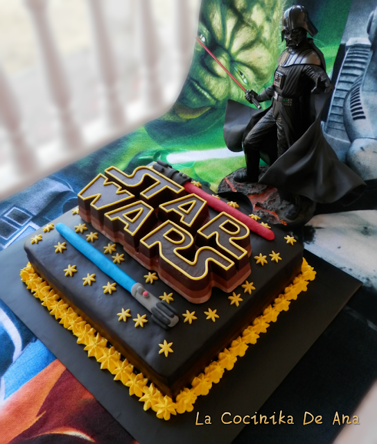 Y para ir goloseando no hay mejor que hacerlo con una tarta galáctica de Star Wars un pequeño homenaje a tan extraordinaria saga que nos ha hecho vivir momentos de cine inolvidables.