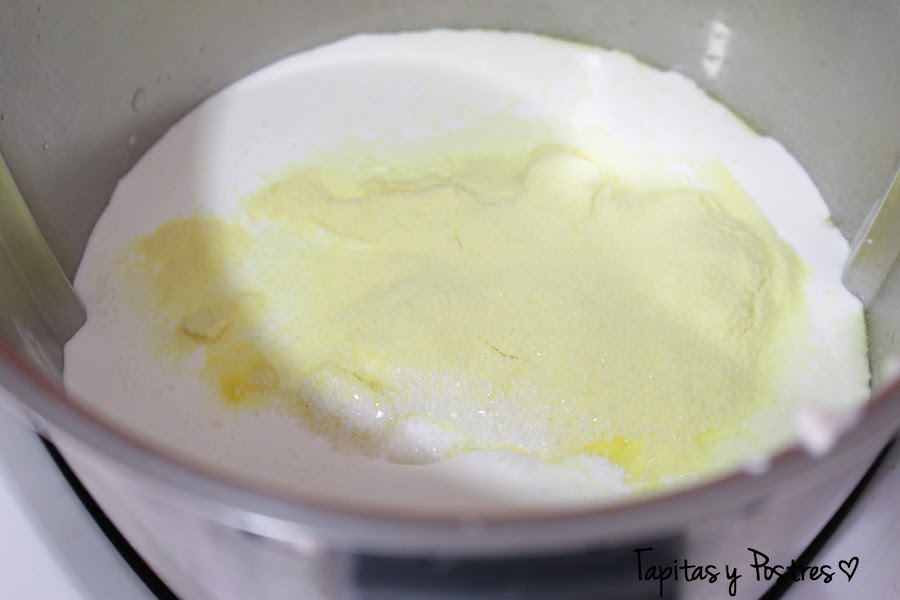 Ahora vamos a programar 10 minutos a 100º y velocidad 7. Mientras tanto ponemos las dos hojas de gelatina a hidratar en agua fría y cuando falte un minuto para acabar, las añadimos por el bocal y dejamos que acabe.