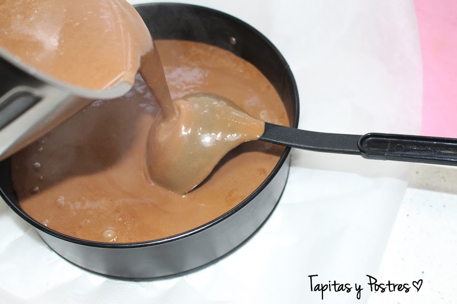 Vertemos la mezcla sobre la base de galletas. Y a enfriar.