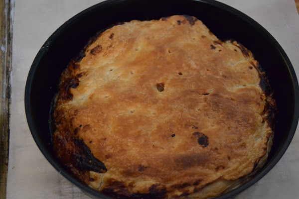 Descongelamos la pasta de hojaldre y la cortamos un poco mas grande que el molde que vayamos a utilizar. Reservamos.
