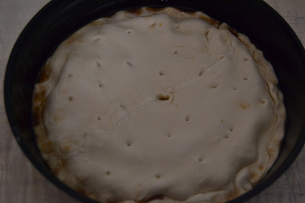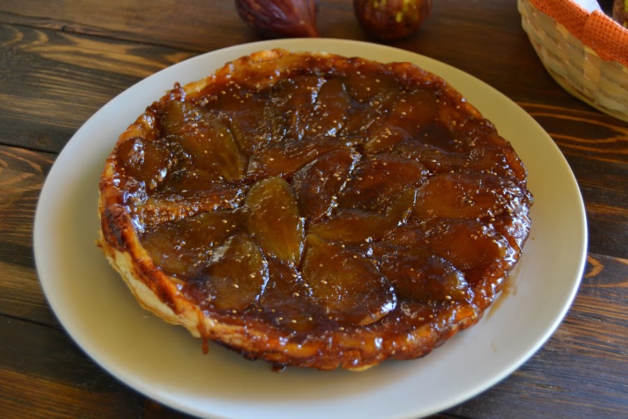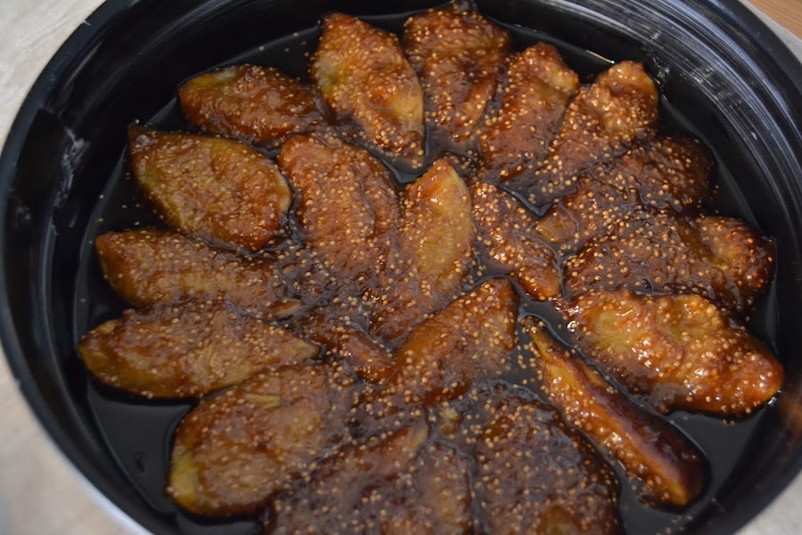 Una vez que tengamos las brevas caramelizadas en el molde, dejamos que enfríen un poco y le ponemos por encima la masa de hojaldre, la remetemos bien y la pinchamos con un tenedor para ayudar a sacar el vapor.