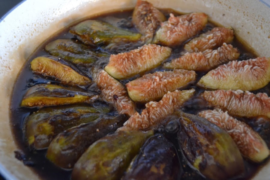 Calentamos un poco y echamos las brevas, con cuidado de que no se nos partan, sabéis que son muy delicadas, Dejamos que se caramelicen, primero lo hice por la parte mas carnosa para que así soltaran el jugo y luego les di la vuelta por la parte de la piel.