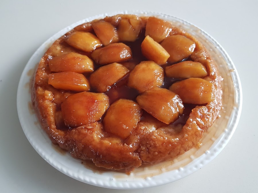 Según cuentan, el origen de esta receta se debe a un "accidente" de las hermanas Caroline y Stephanie Tatin, que tenían un pequeño hotel en la Lamotte-Beuvron. Que con las prisas pusieron las manzanas antes que la masa, y le dieron la vuelta, y "Voilà", tremenda tarta la que le salió.