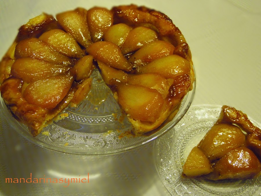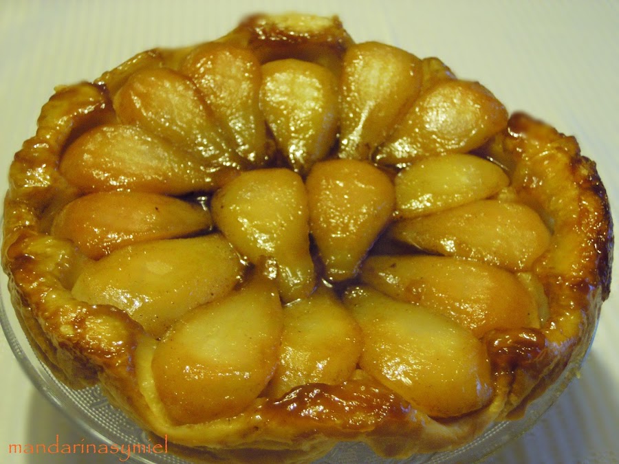 No os podéis imaginar la de recetas riquísimas que tiene Sandra, como casi siempre, me ha costado elegir una de entre todas, y como casi siempre también, me he decantado por una dulce. Tenía varias guardadas como las preciosas rosas de manzana y canela (que otro día caerán), o los eclair de nata (crema de leche) y fresa, pero al final me he decidido por esta deliciosa tarta tatín de pera pensando que a mi marido le encanta la tatín de manzana....espero que esta le guste también!!