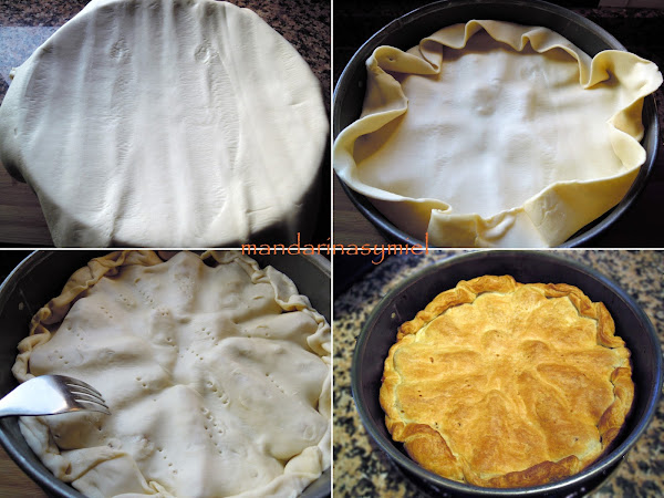 Hornea la tarta durante unos 30 o 35 minutos, o hasta que veas que está dorado el hojaldre.