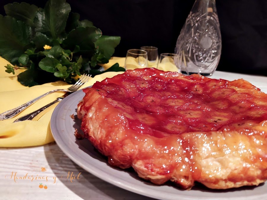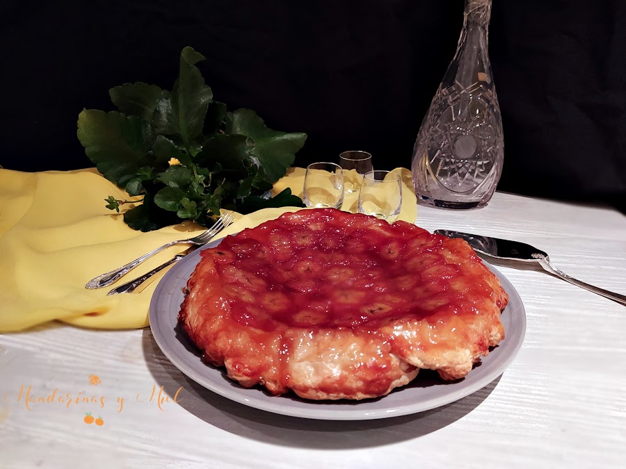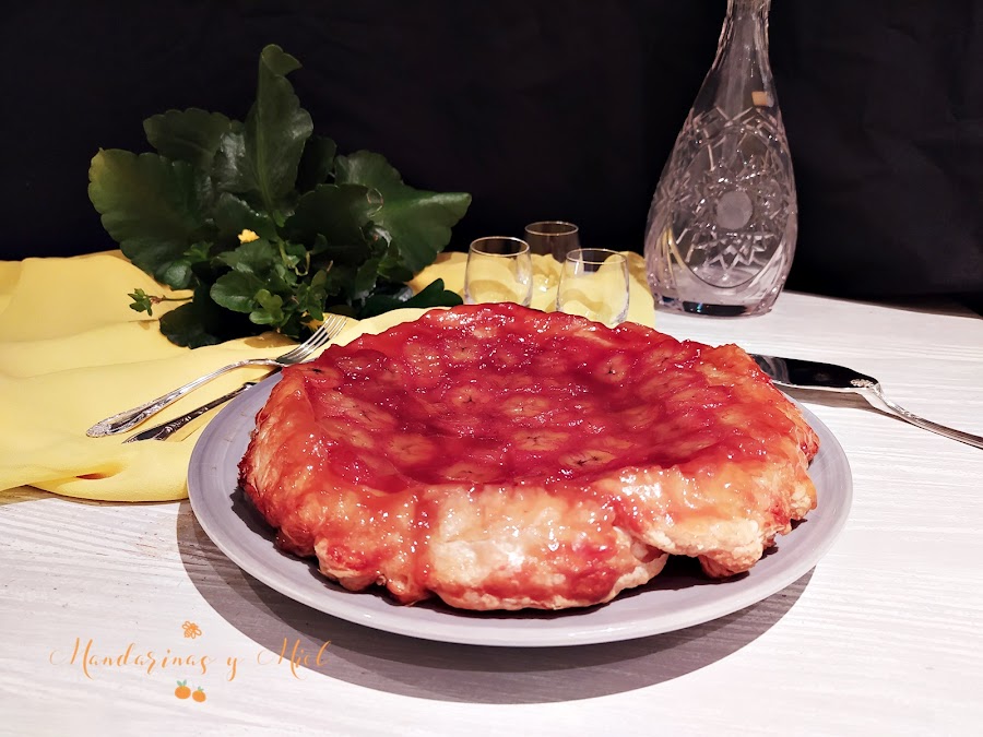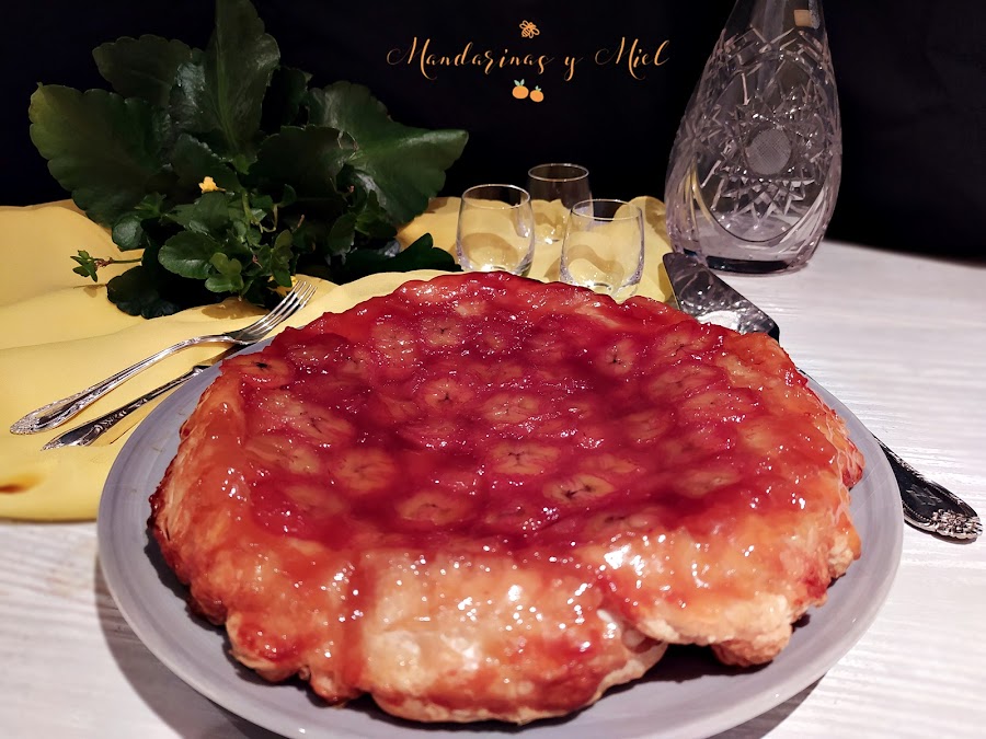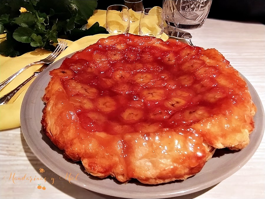 En el blog tengo ya dos tartas tatín publicadas, la de manzana que es la más tradicional, y la tarta tatín de pera, que es una delicia también; ahora le ha tocado el turno al plátano y te aseguro que está riquísima, y es que el plátano caramelizado es una delicia....si quieres ver la historia y el origen de la tarta tatín pincha en el enlace Tarta tatín de manzana con helado.