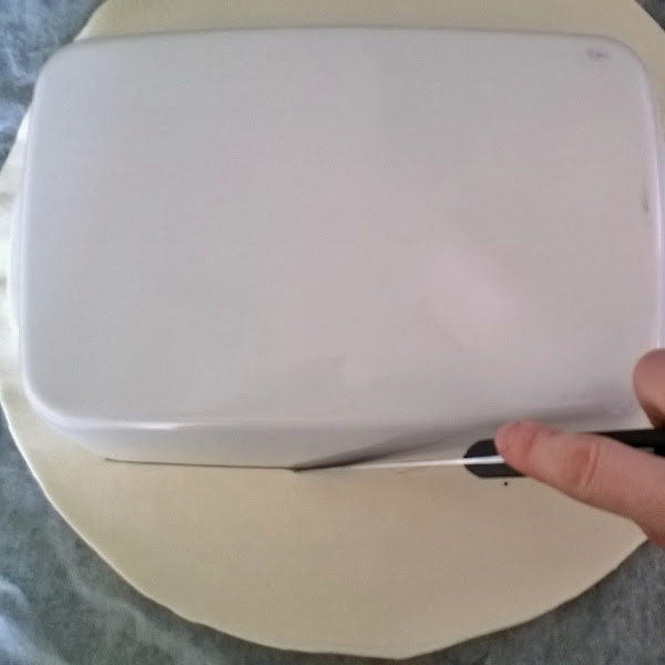 2. Cortamos el hojaldre del mismo diámetro que el molde o sartén que vayamos a usar.