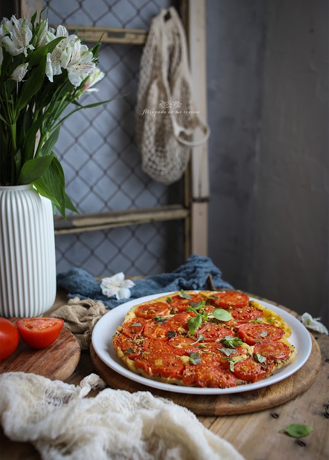 Este verano tengo sobre excedente de tomates en casa, por lo que sigo probando nuevas recetas para usarlos, y cuando vi esta tarta tatin de tomates con queso de cabra me enamoró al instante. Como muchos sabréis la tarta tatin es una tarta invertida, que se hornea al revés y después se sirve dando la vuelta. El resultado es delicioso y para los amantes del tomate una gozada.