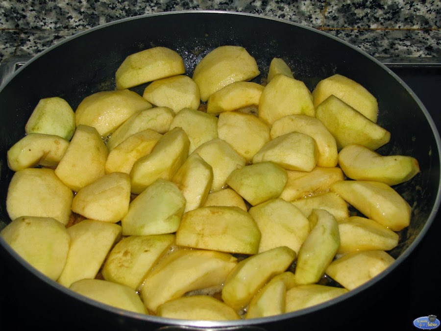 La mayoría de la gente utiliza manzanas reinetas o grany smith que son más ácidas pero como tenía mucha golden pues con esa misma así que para la próxima vez ya probaré con otra manzana...jeje