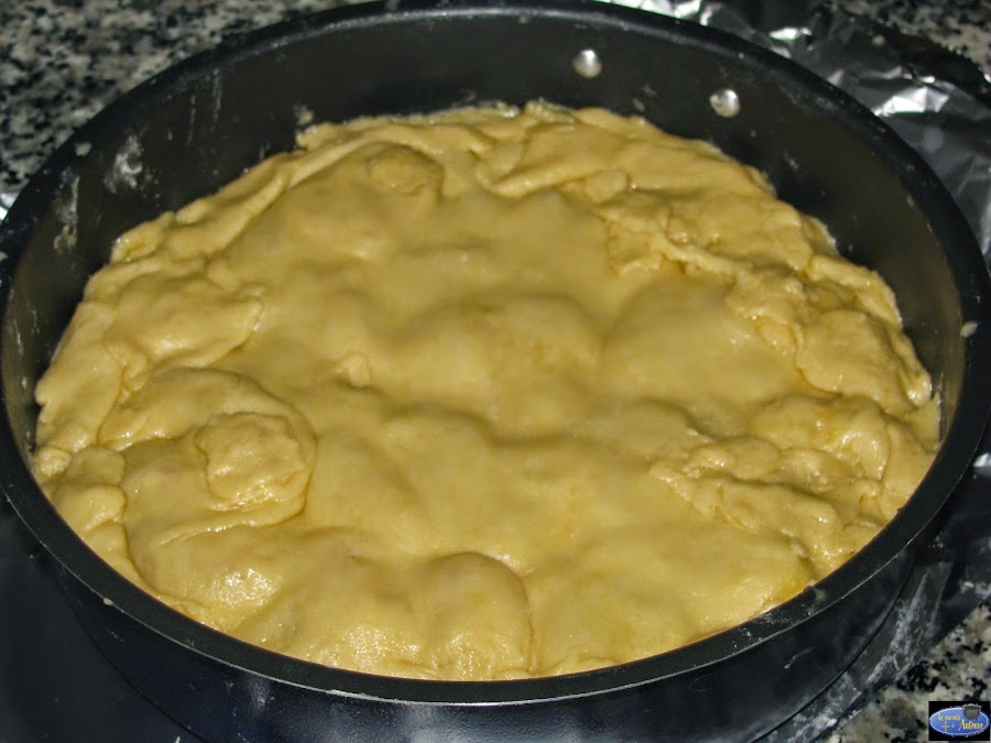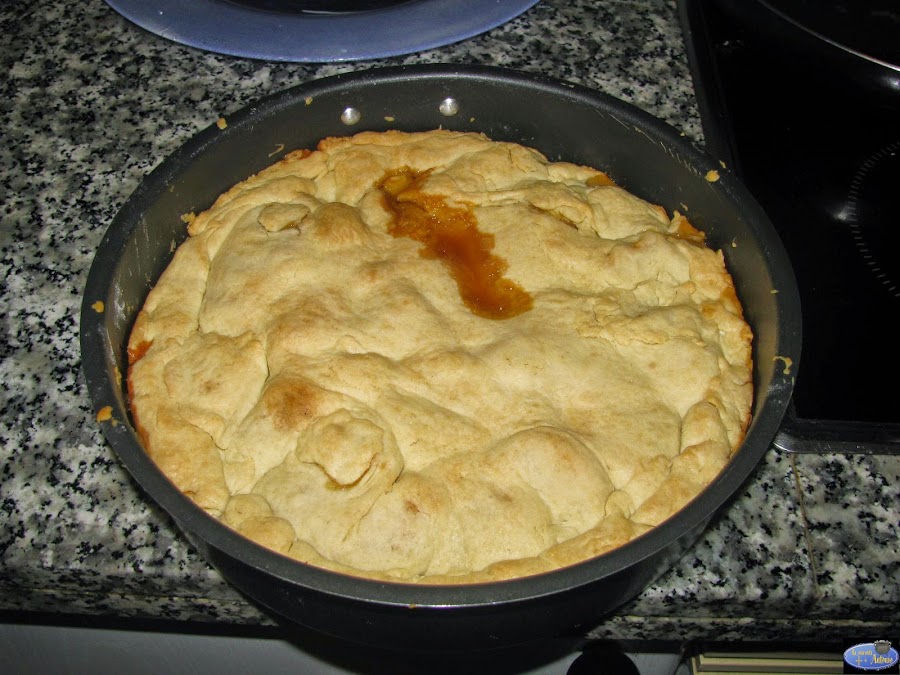 Como veis yo tuve que hacer algunos remiendos con la masa pero lo importante es que quede bien extendida por todo el molde.El molde tiene que quedar muy bien relleno con las manzanas para que no haya huecos. Precalentamos el horno a 200º y lo metemos unos 25 minutos en el medio.