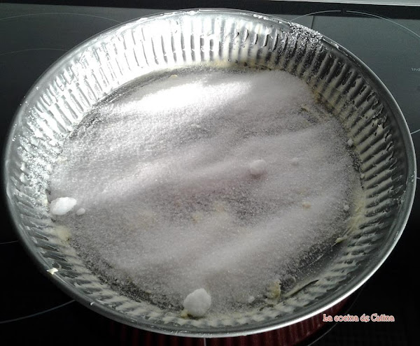 Untar con mantequilla el fondo de un molde para tartas, esparcir el azúcar, calentar a fuego lento hasta que se caramelice.