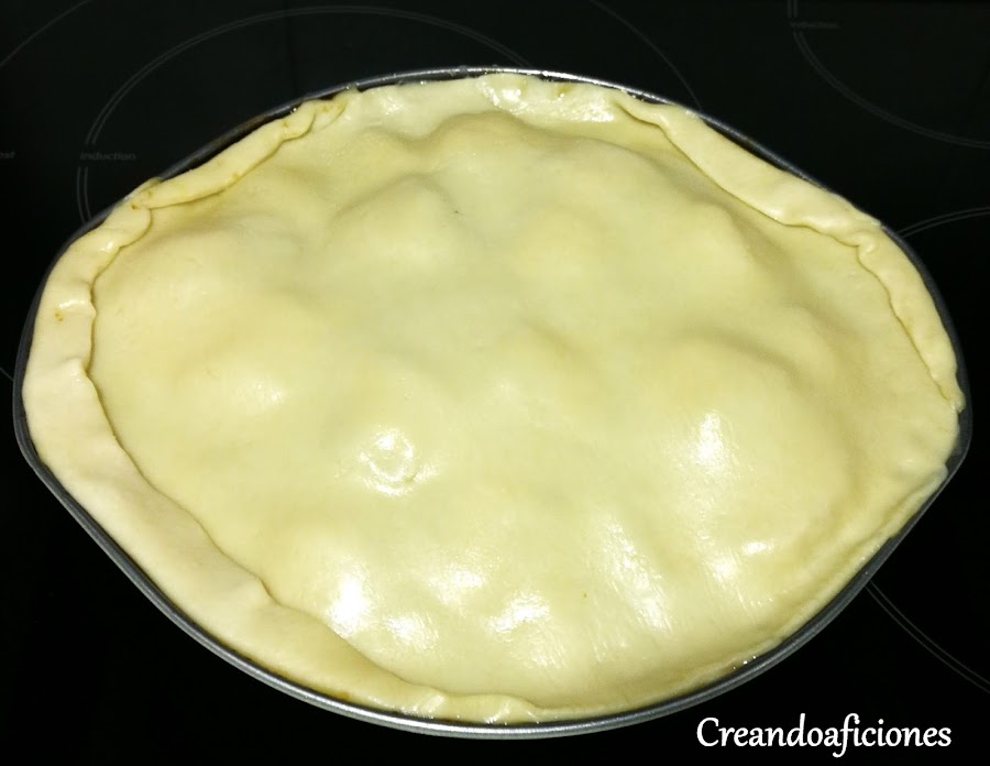 Ponemos la masa quebrada encima de las manzanas tapando todo el molde y volvemos a hornear otros 30 minutos.