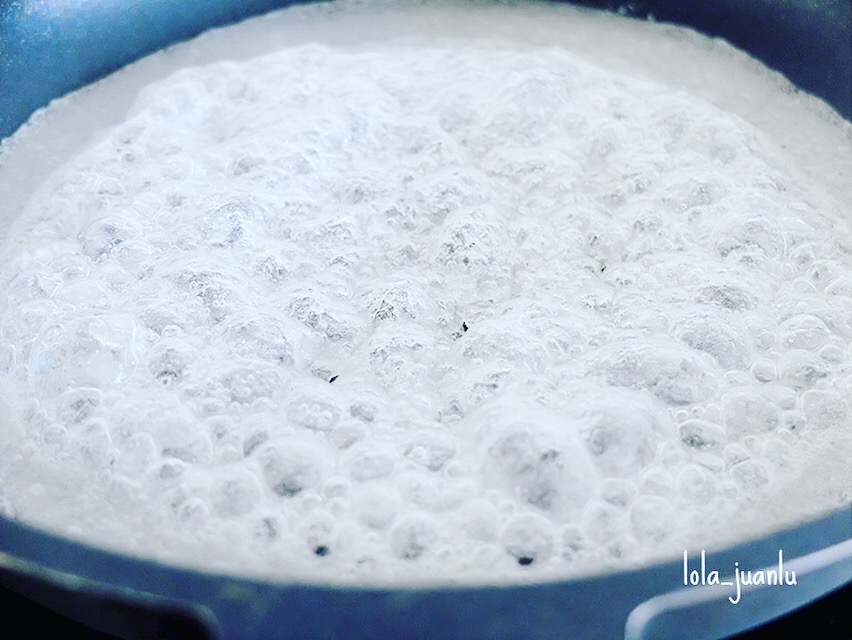 Otra opción es, colocar la mantequilla en una sartén que ponemos al fuego. Cuando la mantequilla esté derretida, agregamos el azúcar y el agua. Removemos hasta que el azúcar esté disuelta y dejamos al fuego lento hasta que la mezcla adquiera un tono dorado.