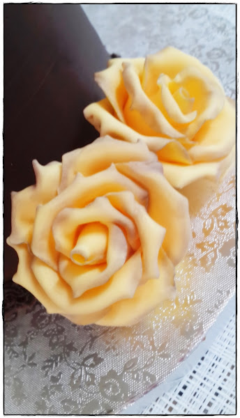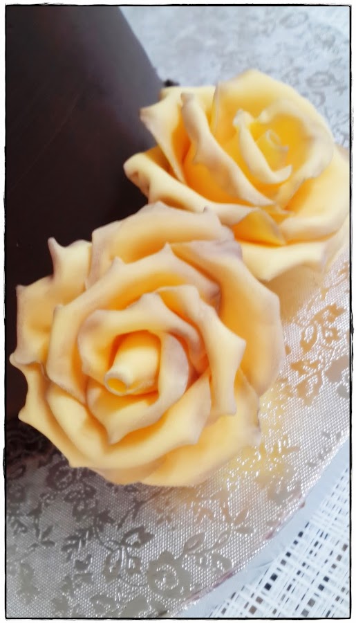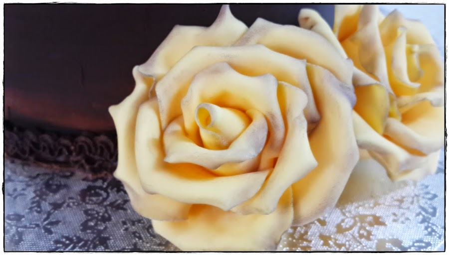 Las rosas, me encantan, están hechas con fondant, no con pasta de flores, ya se que quedan mejor con pasta de flores o no, a mi de fondant también me gustan mucho y con la marca que trabajo el resultado es genial.