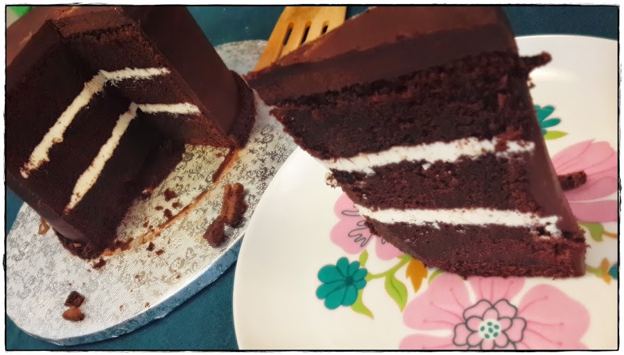 Aquí la tenéis por dentro. Bizcocho de chocolate con crema de vainilla, una combinación buenísima y nada empalagosa.