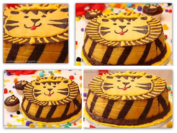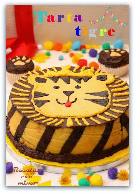 Esta Tarta Tigre de chocolate está riquísima y tiene un corte que sorprende. Va perfecta para una fiesta infantil, además seguro que también les divierten los Bombones dinosaurios.