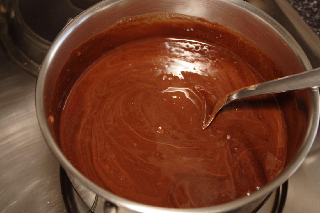 Fundimos el chocolate y la mantequilla en un cazo, mezclamos bien y reservamos.