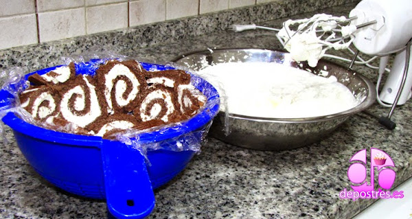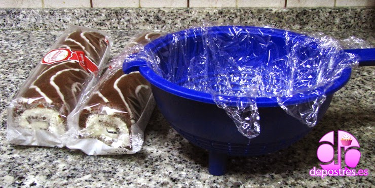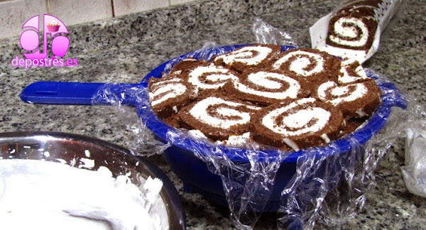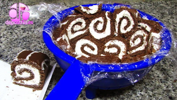 Cortamos los brazos de gitano en rodajas de un dedo de gordo aproximadamente. Con esto vamos forrando el cuenco hasta llegar a la altura deseada.