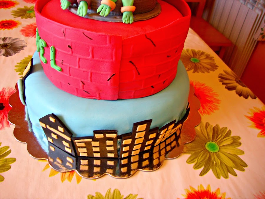 Toda la decoración está realizada con fondant de diversos colores y rotulador comestible.