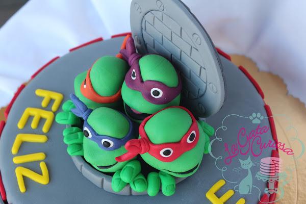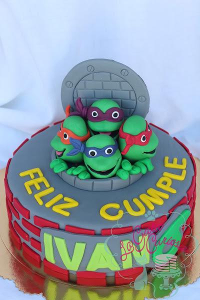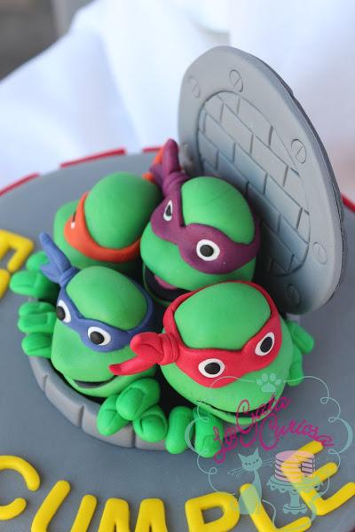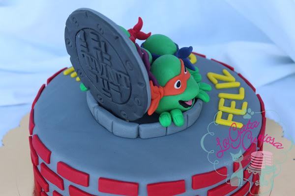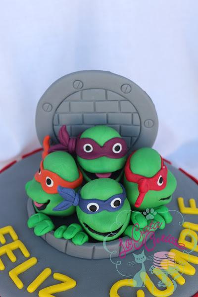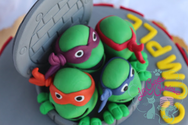 Cuando tu sobrino de dos años te llama y te dice con su lengua de trapo que quiere una tarta de las tortugas ninja y de la tortuga ninja naranja, pues ¿tu qué haces? pues claro, ponerte a mirar por la red para sacar ideas y luego hacer tu propia versión, ¿verdad? Eso fue exactamente lo que hice yo!Hay tartas que la verdad es que son muy significativas, en concreto esta; carretera, alcantarillas, p ...