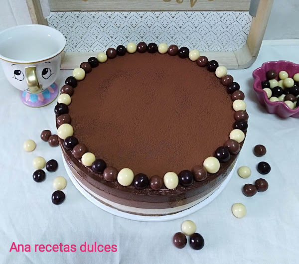 (Yo le e espolvoreado chocolate puro en polvo por toda la superficie de la tarta y la e decorado con bolitas de cereal de chocolate).