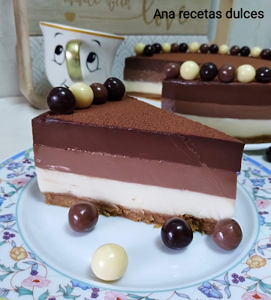 El procedimiento es el mismo, la única diferencia es que lleva azúcar ( la añadiremos junto con la leche y la nata (crema de leche)).Rallamos la superficie de la capa de chocolate blanco con un tenedor para ayudar a fijar la siguiente capa.