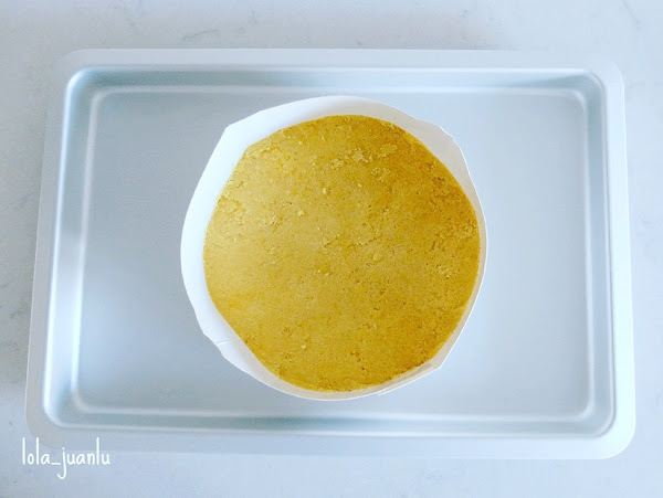 A continuación, preparamos la base de la tarta, para ello, introducimos la mantequilla en un cazo que ponemos al fuego. Mientras, colocamos el molde en una bandeja de horno para que esté más estable a la hora de transportarla. Una vez la mantequilla esté derretida, apartamos del fuego, añadimos el contenido del paquete de mezcla para la base y mezclamos con ayuda de una cuchara. Colocamos la mezcla en la base del molde y extendemos bien, presionando con la cuchara. Lo llevamos a la nevera y dejamos reposar como mínimo 10 minutos.