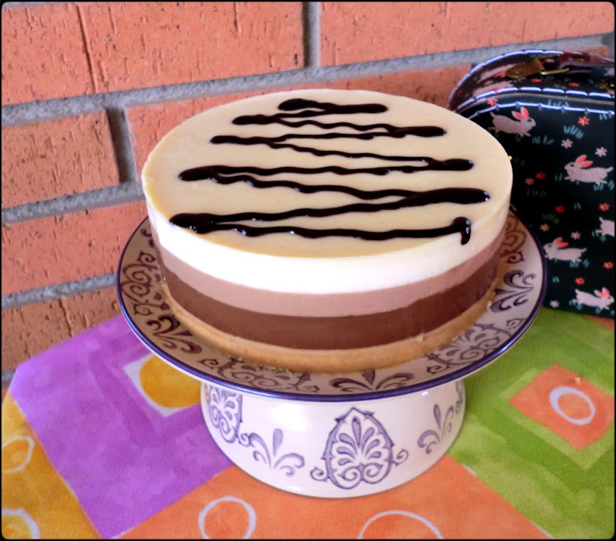Antes de echar este chocolate haced con un tenedor unas marcas en el chocolate negro para que el otro chocolate se asiente bien y al desmoldarlo no se nos separen, (como se ve en la foto)
