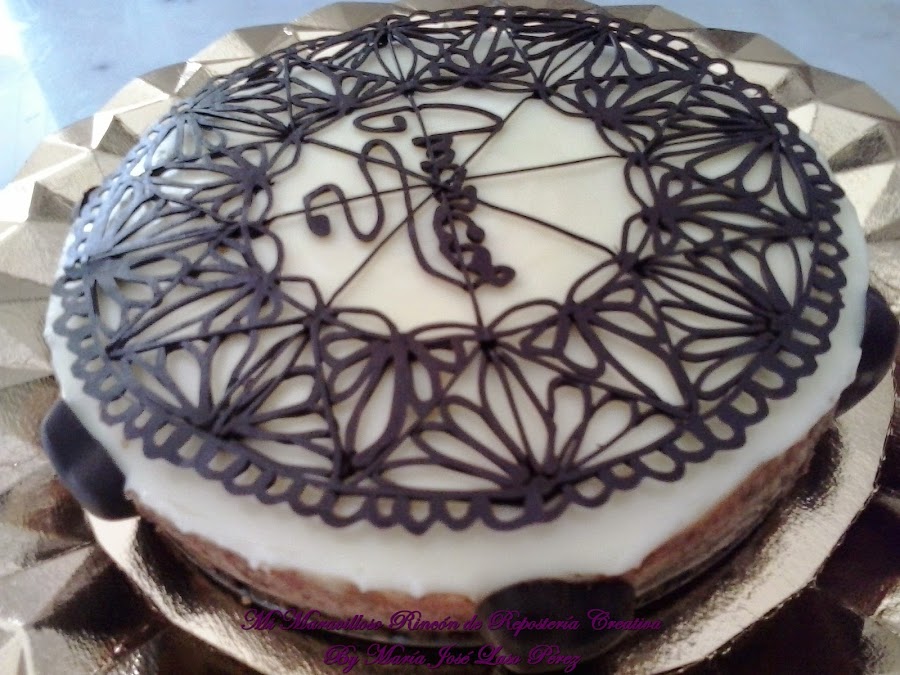 Para llegar al resultado que veis arriba, tuve que repetirla tres veces, pero ¡por fin "a la tercera va la vencida"! Con esto os animo a seguir intentándolo cuando no os salga una receta, porque muchas veces las cosas no salen a la primera, pero por esa razón no hay que desanimarse. ¡Le puede pasar a cualquiera! Bueno, pues os cuento como lo arreglé yo. Sigo viendo en Internet la receta de esta tarta en innumerables sitios de repostería, y hasta ahora no he visto ninguna que incluya la gelatina. Yo lo he hecho sin ella y nunca me ha salido, así que os digo como lo he hecho yo porque a mí me ha funcionado de esta manera, y por si hay por ahí alguien al que tampoco le haya salido como a mí, os pongo "mi versión" de la tarta de tres chocolates.