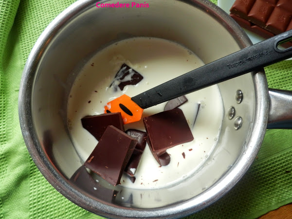 El procedimiento es el mismo que para las tres capas, se mezcla el chocolate con 200 ml. de nata (crema de leche) y se deja hervir, en un vaso aparte se mezcla un sobre de cuajada con 250 ml. de leche y cuando hierva el chocolate con la nata (crema de leche) se retira del fuego, se mezcla la cuajada y se vuelve a poner a hervir.